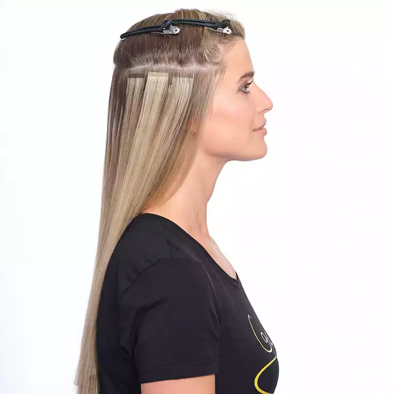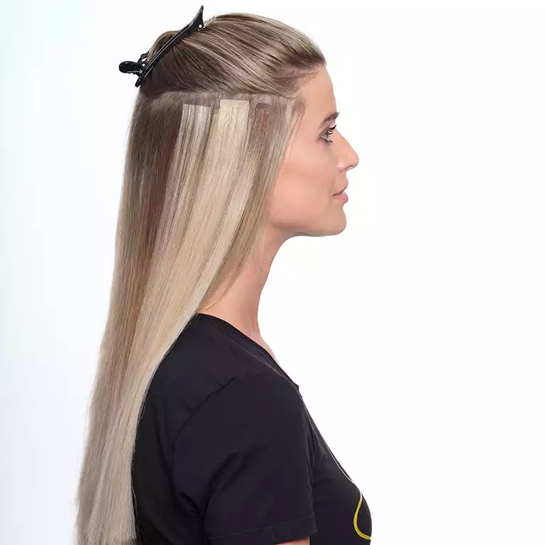 Je nach Wachstum des Eigenhaars bleibt der Effekt bis zu 8 Wochen, danach können die Tape-Ins wieder hochgesetzt werden. Die Tapes sind mehrfach wiederverwendbar und in über 40 Farben und in vier Längen erhältlich. Wie alle unsere hochqualitativen Strähnen nur bei unseren zertifizierten Partner-Salons.
