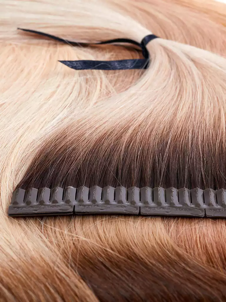 Bei unseren ROOTED-Strähnen sind rund 3 cm des Ansatzes dunkel und gehen dann sofort in unterschiedliche Blondtöne über. Das macht sie besonders auch für Kurzhaarfrisuren geeignet. Wir bieten die Rooted auch in den trendigen Pastell-Farben Lilac, Blue und Coral an.