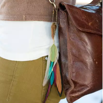 So süß können 3 Federn an einer Kette aussehen: Mit dem Trendaccessoire werden Handtaschen, aber auch Schuhe im angesagten Federn Stil aufgemotzt.