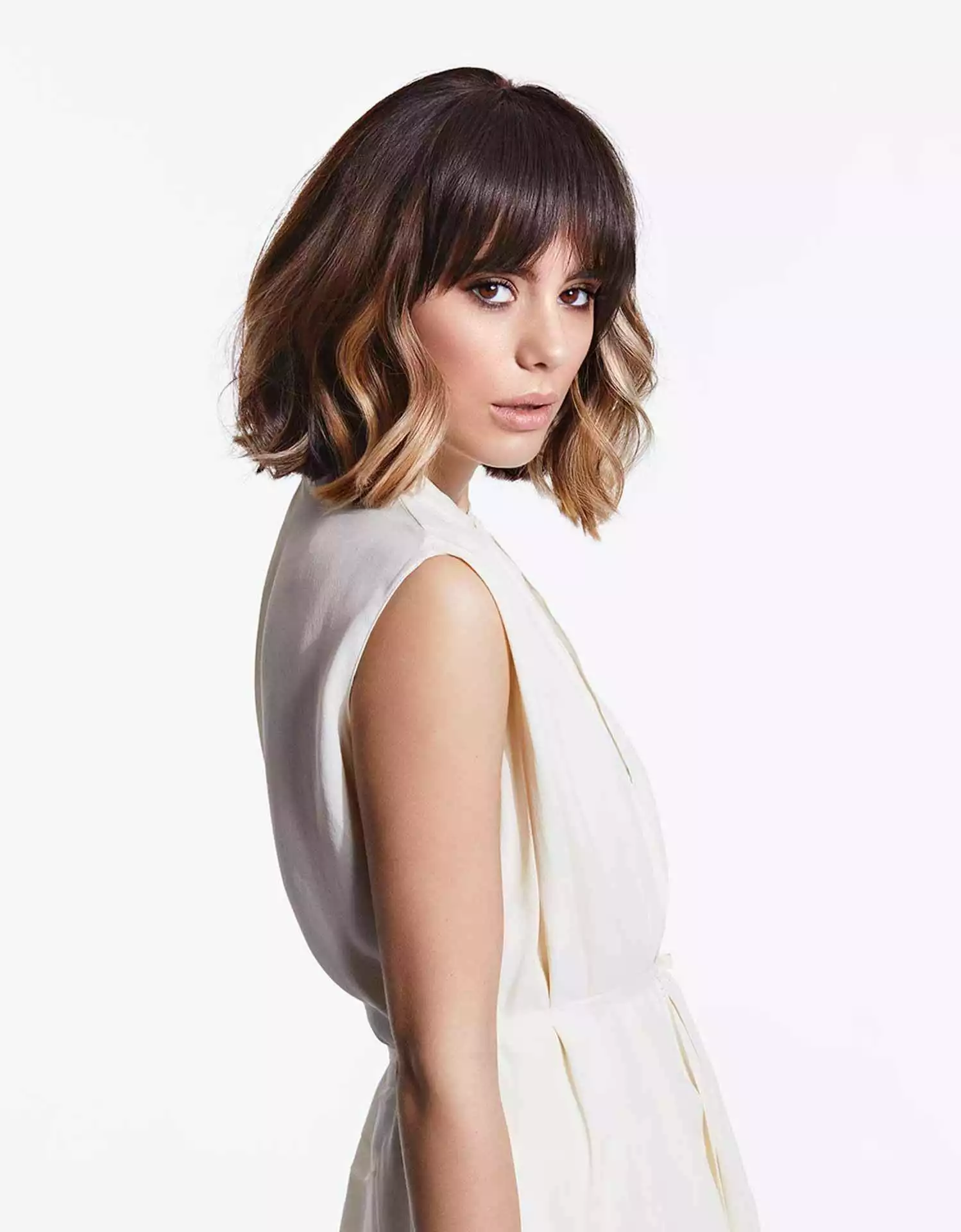 Selbst für herzförmige Gesichter kann dieser Schnitt von Vorteil sein, indem er das Volumen am Kinnbereich ausgleicht und so eine symmetrischere Form schafft.