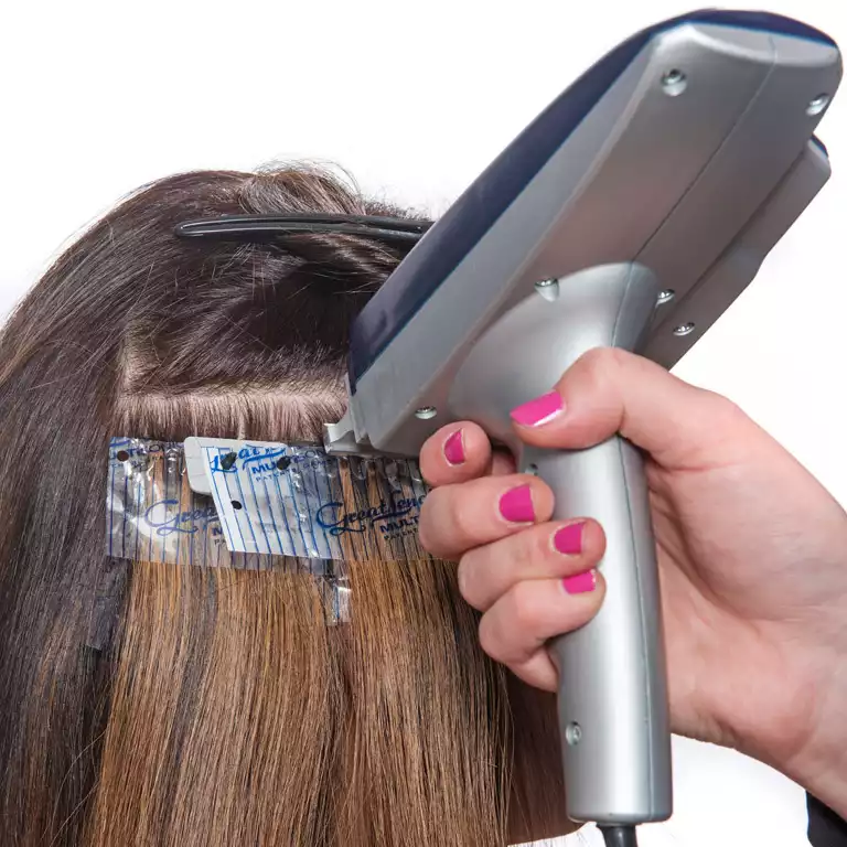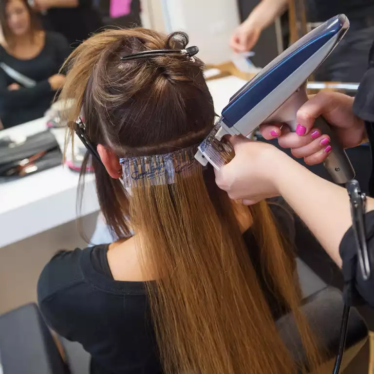 Wenige Tage später werden insgesamt 25 Multisonic-Sets in den Farben 05, 07 und 08 in der Länge von 50 Zentimetern eingesetzt. Während dessen erfährt Carmen einiges über die Pflege mit den richtigen Produkten ihrer neuen Haare.