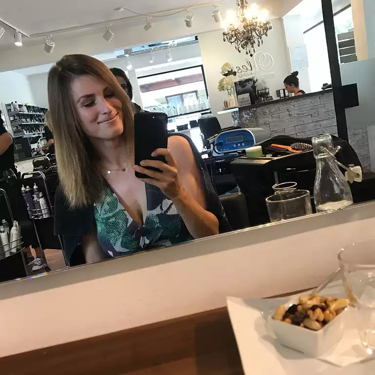 „Ein Anruf und ich wusste, dass ich ‚meinen‘ Friseursalon gefunden hatte. Obwohl ich so ungeduldig war und am liebsten am nächsten Tag meine Extensions bekommen hätte, musste ich zunächst zum Beratungstermin in den Salon fahren. Aber ich hab es schnell eingesehen: Denn wie soll die Friseurin sonst wissen, welche Farbe und welche Länge sie bestellen soll? Das Ergebnis soll ja möglichst perfekt werden! Auf einen Friseurtermin freue ich mich immer ganz besonders, aber dieser war eines meiner Highlights 2018. Der Beratungstermin dauerte ungefähr eine halbe Stunde, in der Nina den weiteren Ablauf bis ins letzte Detail erklärt hat und sich ein Bild von meinen Haaren machte".