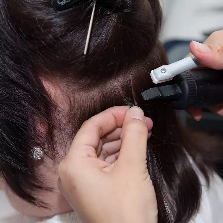 Dank der nahezu unsichtbaren Verbindungsstellen fügen sich die Extensions perfekt in das Gesamtbild ein.