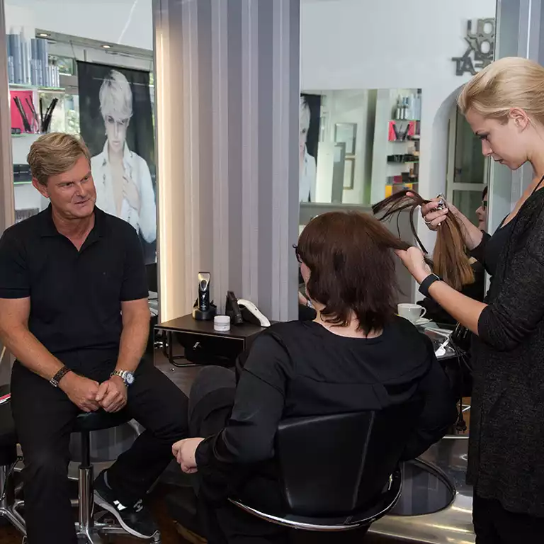 Nach einer ausführlichen Beratung, inklusive Farbbestimmung, stand fest: 100 Echthaarsträhnen in 35er-Länge sollten es sein, 25 Strähnen in der Nuance 02 und 75 Stück in 03. Die Farbauswahl fand sich durch ein natürliches Ergebnis mit facettenreichem Farbenspiel bestätigt.