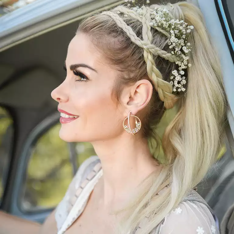 Ganz gleich, ob Sie Ihr Haar halb offen tragen, eine lockere Hochsteckfrisur oder eine raffinierte Flechtfrisur bevorzugen oder darfs doch lieber der altbewährte Fischgrätenzopf sein, egal, mit jeder dieser Frisur werden Sie zum tollen Hingucker.
