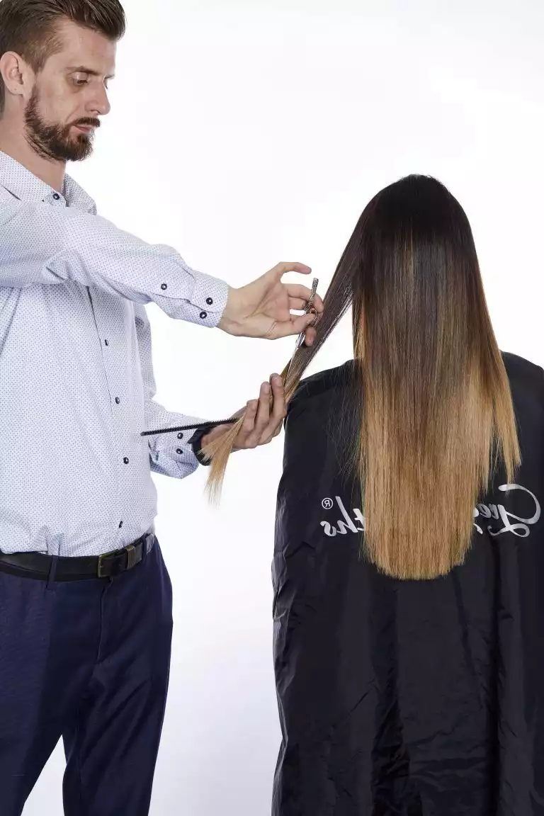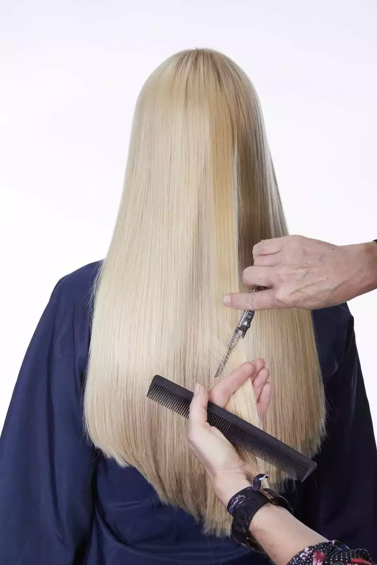 Zum Schluss wendet Ronnie die Slize- und Point-Cut-Technik an. So dünnte sie das Haar nach unten leicht aus und schaffte einen zauberhaft natürlichen Fall.