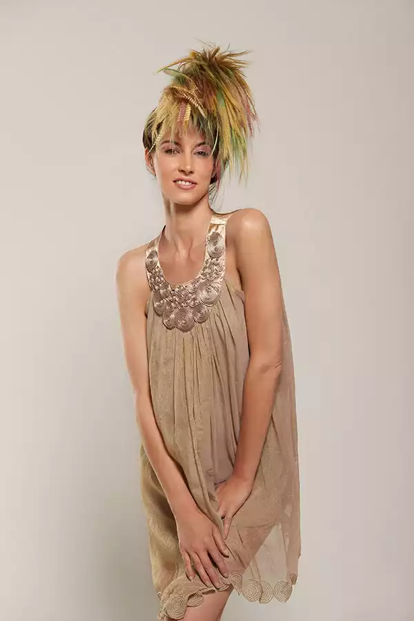 Wenn an sonnigen Herbsttagen die Blätter von den Bäumen fallen, dann verändern sich deren Farben im Flug. Je nach Perspektive bedienen sie sich dabei einer ganzen Palette von Nuancen. Unser vierter Look macht es diesem fantastischen Naturschauspiel gleich. Hier wird auf braune und kupfrige Farben gesetzt.