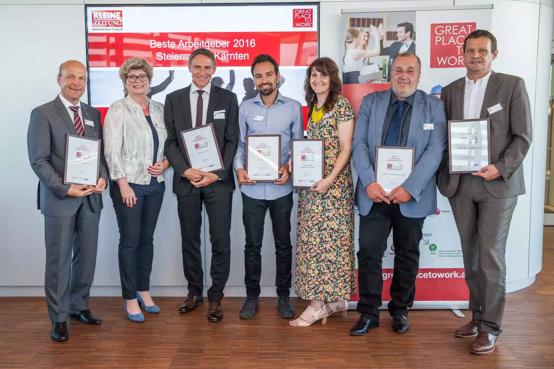 Nach der Auszeichung vom fantastischen Preis von GREAT PLACE TO WORK - Österreich erfolgte die Übergabe des Preises GREAT PLACE TO WORK - Steiermark. Die Freude über die beiden Preise ist riesengroß.